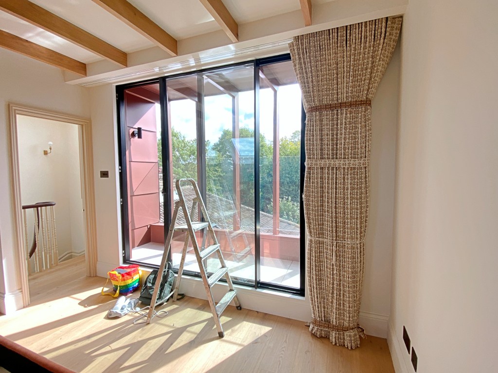 The top of the curtain is reinforced with buckram, which gives structure to the pleats and provides a stable surface for attaching the pin hooks.